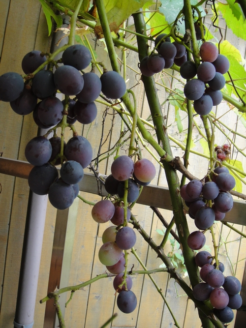 We will have the very first harvest of these Kyoho grapes since we planted them in this garden.